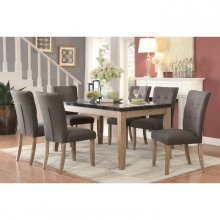 Combining the look of natural elements with transitional styling, the Huron Collection will be a welcome addition to your home casual dining space. Placed atop legs that feature the look of weathered wood, is the gray fabric-covered button-tufted upholstered seat and back of the chair. The classic profile of the chair will lend neutral accent to your dining space.