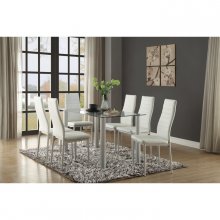 Ultra modern styling is exemplified with the design of the Florian Collection. The white faux leather covered seat of this dining chair furthers the contemporary look of your dining space.
