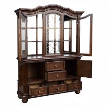 Elegantly designed for the traditional dining room is the Lordsburg Collection. The hutch and buffet, which feature magnificent parquet veneer highlighted by the brown cherry finish, provide ample storage space for your tabletop accessories.