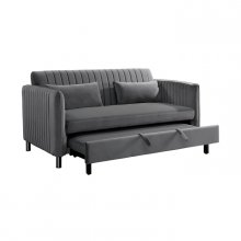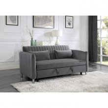 your household. The pull-out bed and click-clack mechanism seat back of this sofa engage to create a platform for sleeping or relaxing. Offered in a brown-gray velvet cover for decorative neutrality and soft touch, the classic design furthers the placement ability within a number of home environments.