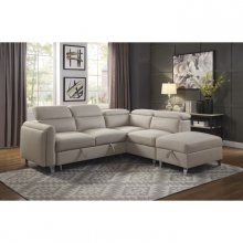 Modern styling is paired with convenience in the addition of the Viggo Collection to your home’s casual living room. The sectional features a convenient pop-up sleeper extension that provides the extra sleep space that so many homes need. The right-side facing attached ottoman opens to reveal additional storage space furthering the multi-functional use of the collection. Click motion backrests, individual pocket coils and foam padding provide customized support to your seating experience. Silver finished legs provide support while beige microfiber fabric covers the sectional for neutral accent to your home’s modern décor.