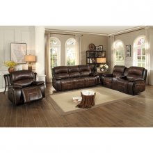 Plush seating is paired with a brown top grain leather and faux leather match in the Mahala Collection to create the ultimate platform for relaxation. The motion mechanisms allow for quick transition from seated to prone with the quick pull of the manual tab.