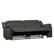 Designed for the transitional home, the Keridge Collection is a study in comfort. Plush seating envelops you, as you relax into the seatbacks. Gray breathable faux leather is highlighted by contrast stitching, defining the profile of the sofa. Manual motion mechanisms operate with the pull of a side-mounted tab, that once engaged, take you from seated to reclined in an easy motion. The sofa features dual reclining ends.