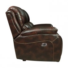 Plush seating is paired with a brown top grain leather and faux leather match in the Mahala Collection to create the ultimate platform for relaxation. The motion mechanisms allow for quick transition from seated to prone with the push of the power button.
