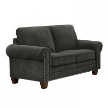 Casual traditional styling creates the look of the Cornelia Collection. Dark gray microfiber covering for neutral complement to your home’s décor. Nail head trim along with rolled arms lend to the soft traditional style.