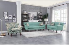 In keeping with the tradition of Mid-Century modern design, the Maja Collection incorporates the classic elements of flared seat backs and legs to create a dramatic profile at home in your living space. Gray neutral-tone fabric that covers the love seat, complemented by the multi-tone abstract pattern of the toss pillow fabric. Button tufting provides visual and textural depth to the design.