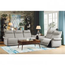 The contemporary styling of the Linette Collection creates a stylish look for your modern living room. Ocean blue fabric presentation over plush seating provides for a soft touch, enhancing your seated comfort level. The hidden power-reclining touch mechanism controls not only how you ease into your desired seating position, but also allows you to control the angle of the headrest. The adjustable armrests create additional customizable comfort while the knife-edge look of the dual reclining love seat’s profile furthers the contemporary styling.