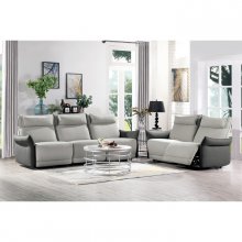 The contemporary styling of the Linette Collection creates a stylish look for your modern living room. The dramatic two-tone gray fabric presentation over plush seating provides for a soft touch, enhancing your seated comfort level. The hidden power-reclining touch mechanism controls not only how you ease into your desired seating position, but also allows you to control the angle of the headrest. The adjustable armrests create additional customizable comfort while the knife-edge look of the dual reclining love seat’s profile furthers the contemporary styling.