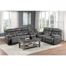 Your vision for creating the ideal environment for rest and relaxation is made reality with the addition of the Madrona Hill Collection. This plush love seat is offered in a gray polished microfiber, with contrast stitching and decorative accent, making it a unique choice for transitional to modern homes. The dual end reclining seats feature manual motion mechanisms that with a pull of a side-mounted tab, take you from seated to reclined in an easy motion.
