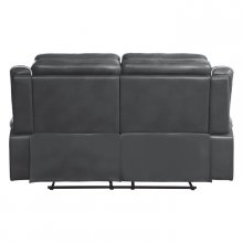 Soft contemporary styling makes the Darwan Collection a comfortable and functional addition to your living room. Dark gray, with light gray contrast welt premium faux leather making the love seat a bold decorative choice for your modern home. Manual motion mechanisms operate with the pull of a side-mounted tab, that once engaged, take you from seated to reclined in an easy motion. The love seat features dual reclining end. Providing additional function is the extended reclining mechanism that allows for further extension than the average recliner.