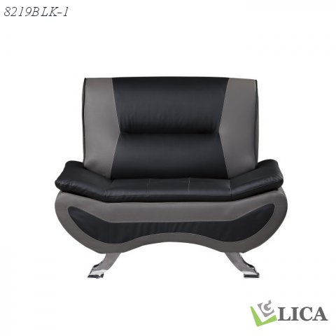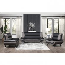 Bringing to mind the sleek styling of an Italian race car, bold contemporary styling creates eye-catching drama for your living room with the Veloce Collection. Color blocked black and gray faux leather covers the ultra-low profile sofa, while chrome legs provide support.