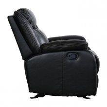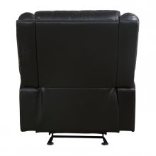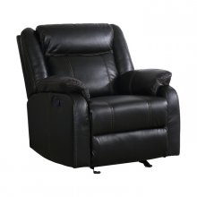 Plush seating with well-appointed features makes the Jude Collection a comfortable and functional addition to your living room. Black premium faux leather coverings for a bold, yet, neutral statement. Manual motion mechanisms operate with the pull of a side-mounted tab, that once engaged, take you from seated to reclined in an easy motion. The chair features a glider mechanism that allows for easy back and forth motion.