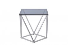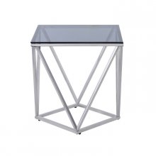 The geometrically inspired base of the Rex Collection creates eye-catching appeal that is sure to lend elegant accent to your modern living room. Black glass table tops are supported by silver finished metal framing lending stark contrast and ultra-modern aesthetic.