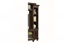 Designed to serve as the focal point of your entertainment room, the Lenore Collection will provide a functional and stylish platform to display your TV, decorative accents and media consoles. Transitional accents such as bun feet, metal knob hardware and a rich cherry finish lend to the classic look. A lighted bridge highlights the display shelf, each providing support to join the two side unit bookcases. Glass and solid door storage, along with the shelving of the bookcases, provides ample storage for your display accents.