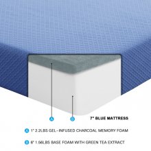 The Leo Collection presents our line of gel-infused charcoal memory foam mattresses that form to your body, creating a customized sleep experience that is as unique as you are. The blue fabric covering the twin mattress is breathable, which allows for a comfortable night’s sleep no matter the season. Our 7-inch mattress features a double layer construction that consists of: 1-inch gel-infused charcoal memory foam and 6-inches of high-density base foam that is infused with green tea extract. All gel-infused charcoal memory foam mattresses are suitable for an adjustable base. The Leo Collection creates the perfect fit for your personal sleep experience.