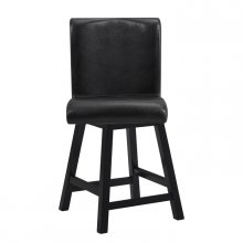 Providing functional accent to your casual dining space is the Hillshaw Collection. The dark brown faux leather upholstered 24-inch counter height chair allows for perfect placement within your casual dining space. The tailored profile of the swivel seat and chairback back are accented by dark brown finished wood legs.