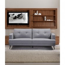 Mid-century design with traditional accents brings together the refined Avery sofa. The tufted back cushions and tapered black legs complement the fresh grey linen-like fabric perfectly for a clean, elegant appearence. The neutral palette allows this stylish sofa to pair perfectly with your living room décor.