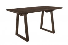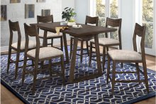 Linear design paired with dramatic natural detail combine to create the modern look of the Kirke Collection. The geometric inspired lines of the counter height table’s base and the brown finish over the variegated grain of mindy veneer, lend eye-catching visual detail to the profile of this dining table. The paired chairs are offered in two unique styles - a high backed counter height chair and counter height stool. The chairs feature a light, neutral-toned fabric seat.