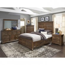 Classic transitional styling takes on a rustic aesthetic in the design of the Narcine Collection. Functional storage space is a concern in any home and with the addition of the queen bed, those worries are a thing of the past. Storage drawers feature prominently in the design, with two drawers on each side rail – each featuring cedar bottom drawers. The weathered gray finish of the oak veneers furthers the transitional design.