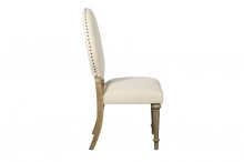The intersection of traditional formality and casual elegance is perfectly captured in the design of the Avignon Collection. Oak veneer is highlighted with a natural taupe finish that is complemented by the natural toned fabric of the accompanying round-back side chairs and wing-back host chairs. Dark nailhead defines the chair profiles while also providing contrast to the light fabric. Also available is a functional server that features drawer, shelf, wine rack and behind glass door storage.