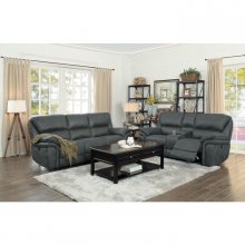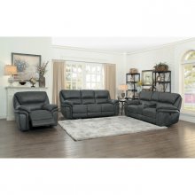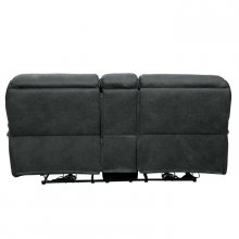 Styled for the transitional home, the Hadden Collection is a comfortable and functional addition to your living room. Gray performance fabric that is water and liquid resistant making it a neutral and functional decorative choice for a number of home environments. The manual motion mechanism, once engaged, operates to take you from seated to reclined in an easy motion. The love seat features dual reclining ends.
