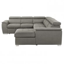 Designed for the maximum utilization of function and an eye for modern styling, the Berel Collection is the perfect platform for you to indulge in comfort. The sectional’s configuration pairs the following components to create versatile seating and sleeping options for your living room: the left-side two-seater features a pull-out bed, corner seating unit, armless two-seater, and right-side chaise with hidden storage. Contoured pillow-top arms and adjustable headrests lend to the comfortable seating arrangement. The brown chenille upholstered cover furthers your plush seating experience.