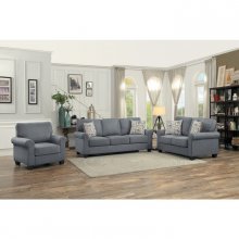 The classic profile of the Selkirk Collection creates a comfortable and functional platform for your individual decorative ideas for your living room to take shape. Gray fabric is paired with neutral toned toss pillows for versatile placement in a number of environments.