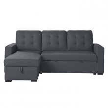 Casual contemporary styling creates a modern look for your living room in the Cornish Collection. The reversible configuration of the three-seat sectional comes in the form of the ottoman that is utilized as the base for the reversible end chaise cushion and arms, creating the option of a left or right extension of the sofa seating. The two-seat section of the sofa features a pull-out bed that, when extended, pairs to the chaise to create a bed. The charcoal gray fabric cover paired with the streamlined profile of the sofa lend to the versatile look of the collection.