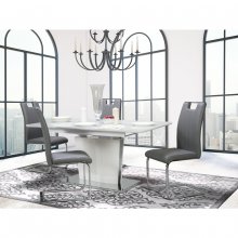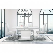 - Complementary white high-gloss extension leaf extends table from 63 to 78.75 in