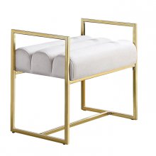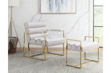 Utterly distinct with its unique geometric design, the Juno collection makes a terrific statement no matter where you place it. This ottoman is supported by a gold-finished continuous metal frame reminiscent of the glamour of Art Deco. Architectural lines are contrasted with barrel-roll curves, creating deep channel grooves. Foam-padded for utmost comfort, the Juno ottoman is upholstered in plush sand velvet, ensuring your home is enriched with both contemporary style and functional comfort. Also available in the following combinations: chrome-finished with charcoal or grey faux leather, or gold-finished with black velvet. Coordinating accent chair also available.