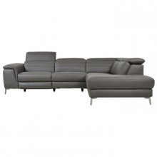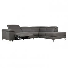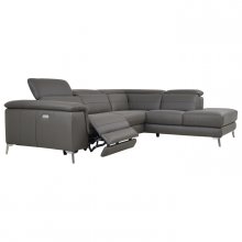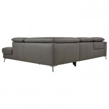 The ultra-low profile of the Cinque Collection is the epitome of clean Italian design. Headrests are adjustable to create a break in the profile of the sofa, while the left end chair utilizes power reclining to provide additional support. The modified right side chaise provides ample space for relaxation whether seated or prone. The dark gray top grain leather upholstered cover and chrome finished legs complete the look of this sectional seating group while USB charging port lends functional convenience the group's design.