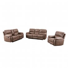 When you work hard, you deserve to relax hard, and that's why we've brought you the Easton reclining sofa collection. Designed to cushion and cradle your body, it's easy to sit back, activate the double tab-pull latch to recline, and let your troubles melt away. Swathed in super soft polished microfiber, this neutral light brown fabric feels like a cloud even though it looks like leather. Dense foam over coils within the generously stuffed back and seat cushions work in tandem with the plump headrest and thick pillow arms to give you optimal support, while piped seams and stitch detailing give the Easton sofa the visual flair it needs to look great in any room. Also available in grey polished microfiber.