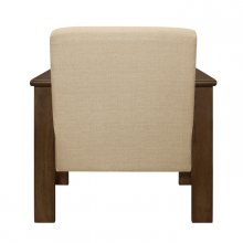 Providing accent to the transitional surroundings of your home is the Helena Collection. Styled with a nod to the Arts & Crafts era, the chair’s solid wood construction features a walnut finish, vertical slat accent on the arms, as well as clever and convenient storage space located between the seat and arm profile. The padded seat and back of the chair is covered with light brown textured fabric upholstery.