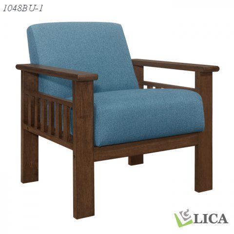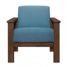 Providing accent to the transitional surroundings of your home is the Helena Collection. Styled with a nod to the Arts & Crafts era, the chair’s solid wood construction features a walnut finish, vertical slat accent on the arms, as well as clever and convenient storage space located between the seat and arm profile. The padded seat and back of the chair is covered with blue textured fabric upholstery.