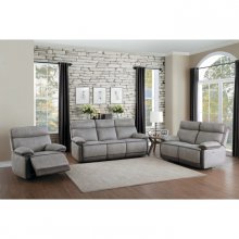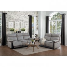 Styled for the modern home, the Barilotto Collection’s contemporary profile will lend a distinct look to your living room. Offered in a two-tone gray and taupe material, the color combination creates a clean, neutral palette for your decorative whims. The power motion mechanism, once engaged, operates to take you from seated to reclined in an easy motion. The love seat features dual reclining ends. A side mounted USB port provides a convenient power supply, keeping your electronic device within reach. Providing additional support is the power operated headrest that allows you to further customize your comfort experience.
