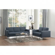 The Soho Collection is a classic study in the elegance of modern design. The profile of the love seat features straight lines that are synonymous with contemporary styling. Dark gray covering for ultimate design versatility. The reversible back and seat cushions together with metal legs further lend to the modern design.