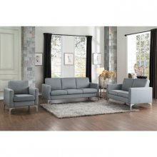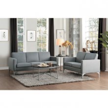 The Soho Collection is a classic study in the elegance of modern design. The profile of the love seat features straight lines that are synonymous with contemporary styling. Light gray coverings for ultimate design versatility. The reversible back and seat cushions together with metal legs further lend to the modern design.