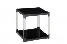 Sleek contemporary styling is fully achieved in the design of the Mehta Collection. The clipped corners of the tabletops and bases are joined by canted acrylic legs while black glass is inset into the metal framed top and base of the tables, further lending to the modern look of the collection.