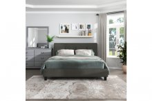Minimalistic styling is the defining line of the Quantum Collection, creating the perfect canvas to complete your decorative vision. Dark gray textured fabric upholstery fully covers the low-profile bed, further complementing the stylistic versatility of the collection.