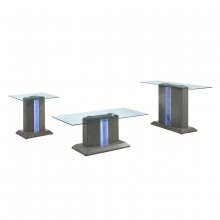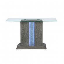Light up your living room with the contemporary styling of the Spectra sofa table - literally! Combining the classic look of a grey wood finish with a modern profile crowned by a clear tempered glass top, the Spectra brings more than just good taste to your home. The pedestal base features sophisticated embedded etched glass panels that showcase 3-way adjustable cool white LED lighting, all controlled by a touch of the button located at the table's base. Create a unique ambience while entertaining or simply ensure your living room doesn't get too dark; either way, the Spectra will enhance your décor enormously.