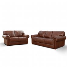 Traditional styling combines with quality craftsmanship in the Morro seating collection. Designed and made in Brazil, this handsome sofa set is upholstered in chocolate brown 100% top-grain leather for a luxurious seating experience. Ultra thick cushioning provides all the lumbar and seat support you need atop a sturdy reinforced frame that is built to last. Dramatic rolled arms give the Morro its distinguished profile, while piped seams and stitch detailing give it a tailored finish worthy of any living room. Also available in light beige-brown leather.