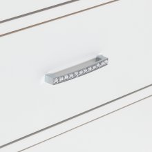 Visually mesmerizing, light dances off the accentuating details of the elegant Aria Collection. The eye-catching iridescence of the embedded acrylic crystal hardware that fronts each drawer sparkles against the bright white finish of the collection.