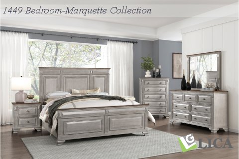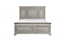 The stately presence of the Marquette Collection is steeped in traditional accenting, culminating in a refined look for your bedroom. Serving as your bedroom’s focal point, the mansion panel headboard of the bed stands apart from the low-profile footboard. Each piece in the collection features picture frame molding, routed pilasters and a two-tone gray and brown finish over oak veneer. The drawers of the nightstand, dresser and chest are accented with antique bronze-finished knob hardware.