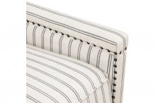 Traditional accents abound in the design of the Landrum Collection, their understated elegance making for classic addition to your living room. Nailhead trim and dark brown finished solid wood legs complement the striped textured fabric that covers the collection. The reversible backs and seat cushions of the seating group are perfect for your active home.