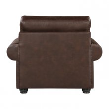 With a refined look that is steeped in traditional design, the Franklin Collection provides a timeless elegance to your living room. Dark brown polished microfiber covers the frame of the chair while traditional rolled arms, and nailhead trim provide classic detail to profile of the design an elegant pairing to complement your space.