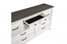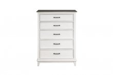 Exuding the aesthetic of casual country living, the Chesterton Collection’s classic lines create a look that perfectly captures your preference for farmhouse design. The two-tone finish of the collection is a warm contrast of dark brown and antique white. The knob and bar hardware that fronts the drawers of the dresser, nightstand and chest provide distinct complementing contrast to the collection’s finish. Providing modern functionality to the nightstand is the back-mounted USB and power receptacles, allowing for convenient access to your electronic devices as they charge.