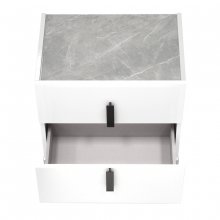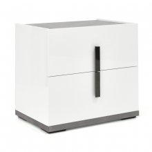 Effortless style with luxurious detailing defines the Mara Bedroom Collection. Designed and produced with signature Italian flair, this exquisite nightstand boasts a pristine white acrylic lacquer with a finish that is both radiant and highly resilient. The top is graced with a grey faux Carrara marble inlay for a truly timeless elegance. Contemporary hardware in a chrome finish creates a vertical line down the nightstand's center for a look that is dramatic yet minimalist. Two drawers are equipped with a soft-closing mechanism for gentle and noiseless closure, allowing your modern bedroom to maintain the peaceful tranquility you deserve.