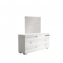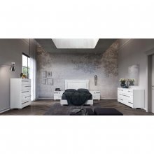 Your bedroom is a reflection of your tastes, and the Volare Collection is just what you need to showcase a strong contemporary personality. Exuding a modern aesthetic with its brilliant white finish, this exclusive Italian-designed bed allows the strength of its clean, minimalist lines to speak for themselves. An acrylic lacquer adds both glossiness and protective shielding to the pristine white finish. White-on-white faux crocodile leather accenting creates a subtle visual impact along the edges of the panel headboard, trimmed with contrasting chrome for an elegantly dynamic finish. Coordinating case pieces are adorned with asymmetrical chrome-finished metal hardware, complete with a soft-closing drawer mechanism that prevents the drawers from slamming. More than the sum of its parts, the luxurious detailing of the Volare cannot be overstated for those who need more out of their bedroom.