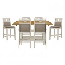 Your casual country inspired dining space presents its charming ambiance with the addition of the Maribelle Collection. The counter height bench provides neutral complement to your space with the gray finish and khaki fabric upholstered seat.