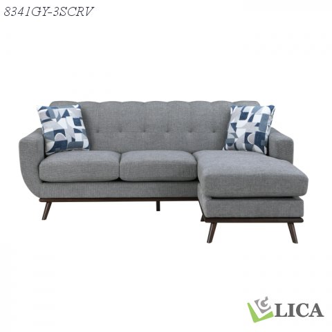 Mid-Century Modern inspired design comprises the timeless look of the Everton Collection. The sofa-chaise’s configuration allows for left or right-side placement of the extension ottoman for a perfect fit within your space. Gray chenille covers the modern frame with geometric print toss pillows, walnut-finished wood base rail and legs providing complementing accent to the group. Contour stitching lends scalloped detail to the seatback’s profile, and front, while the prominent framing of the sofa-chaise’s arms solidifies it retro-inspired form. The collection also features reversible seat cushions.